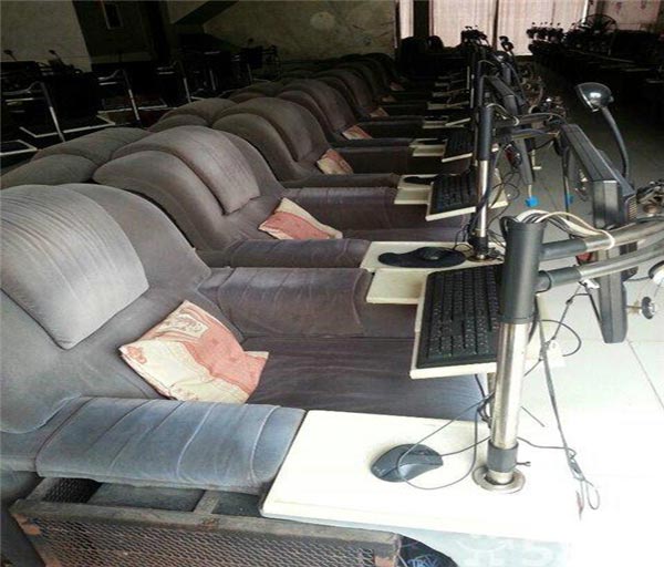 其实是这样的,首先给大家分析一下网吧一体沙发的布局。如果用的是一体机或者是无主机电脑桌的话,网吧一体沙发在没人上机的时候可以推到桌子下面的,节省空间,不是太占空间,但是,要是普通电脑桌结构的话下面会放着电脑机箱的,这样沙发推不到桌子里面所以占空间较大。所以网吧一体沙发可以说就是为了一体机而设计的。